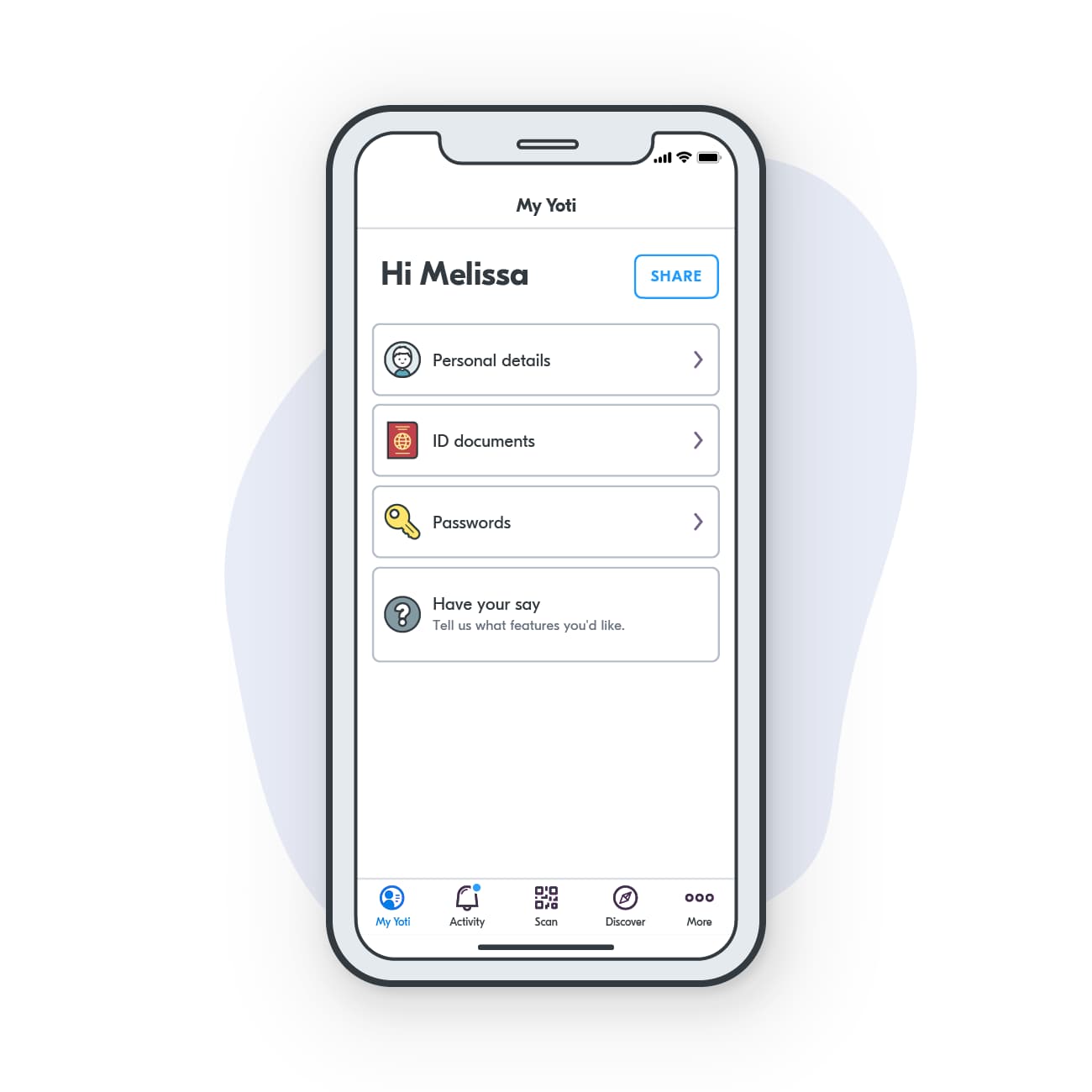 With the free Yoti app, you can create a digital ID that allows you to prove who you are in the most privacy-friendly way. It is built with data minimisation at the core and allows you to share less data to prove your identity or age. You’re in control to show only the details you need, to the businesses and people you trust.