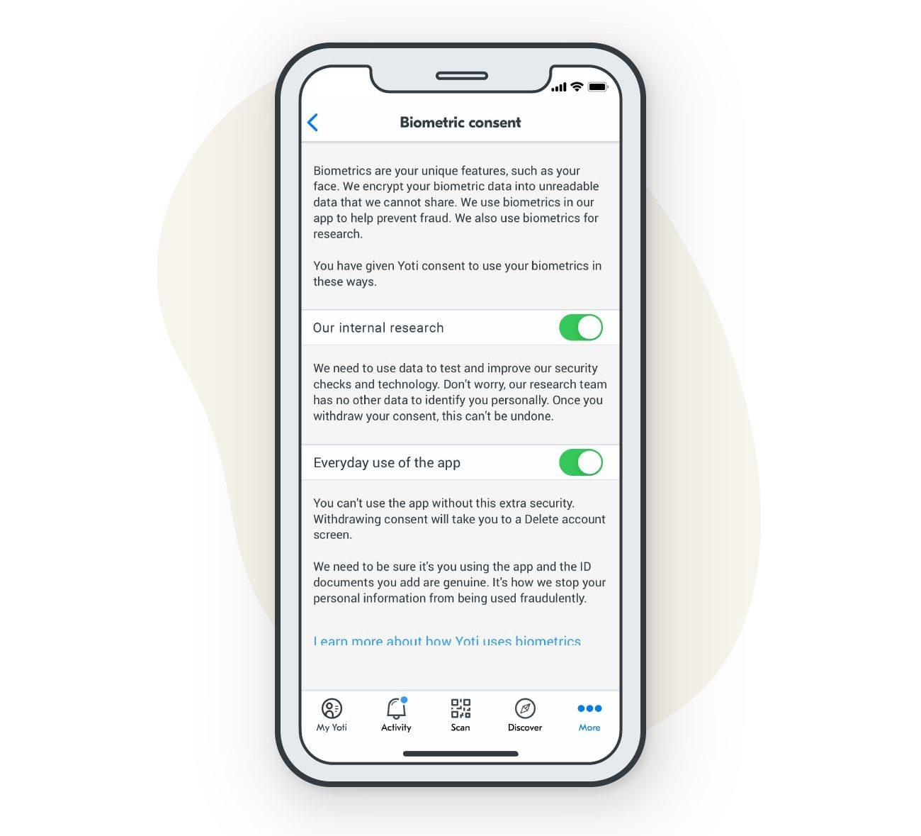 We use biometric (and non-biometric) technologies to carry out anti-spoofing, fraud prevention and security checks. This is the most effective way of verifying that you are a real person and that you’re setting up a genuine digital identity. It allows us to keep our users safe and make sure that only genuine identities are on our platform.